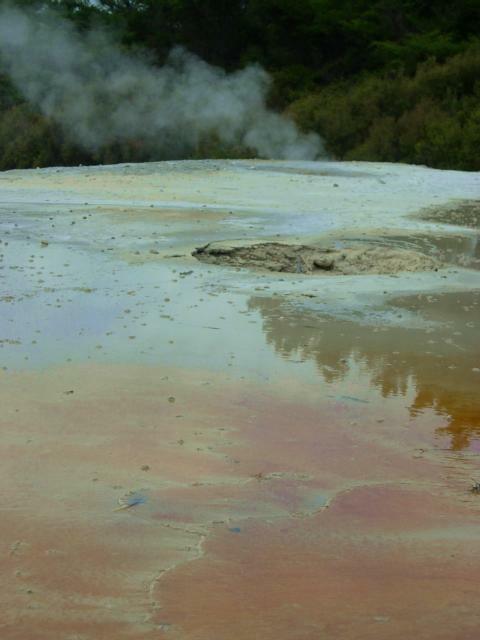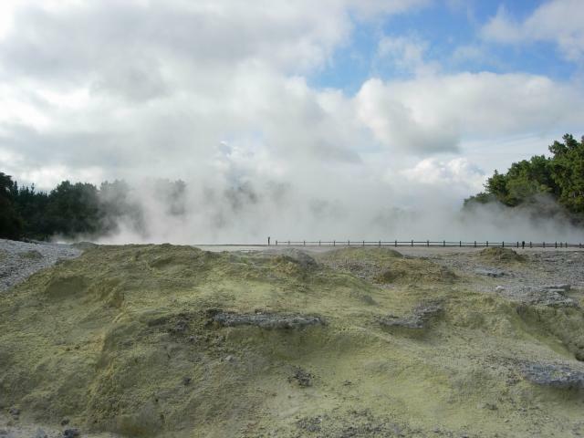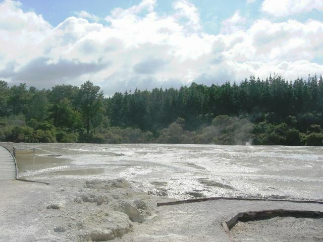 The junction between the Australian and Pacific plates runs diagonally across North Island. This area has been devastating earthquakes, eruptions and lahars. Currently White Island (a marine volcano) is being watched due to earthquake activity (an eruption would cause a tsunami on across the east coast.) You can take a helicopter trip to White Island if you sign a waiver. (There's a special rate for Australians, I was told.)