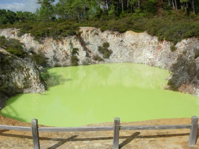 This acidic pool (pH < 1) is colored by sulfur