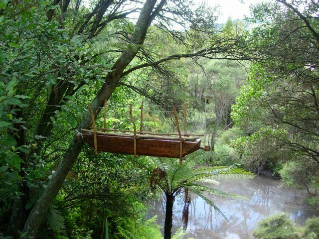 Maori bird trap. Honey in boat attracts birds, who get snared in nooses.
