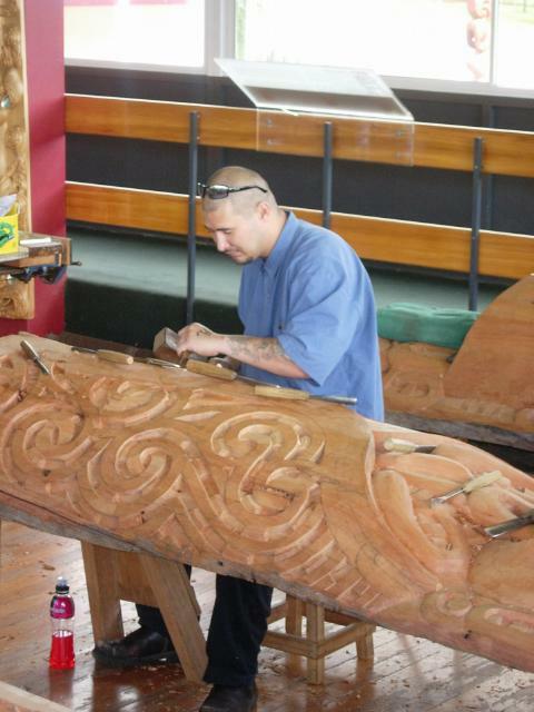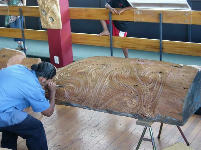 Maori carving school established to teach carving under no-kapu (taboo) conditions where it can be taught, observed, questions asked. Master carvers are appointed for life (the school's on its 4th headmaster).